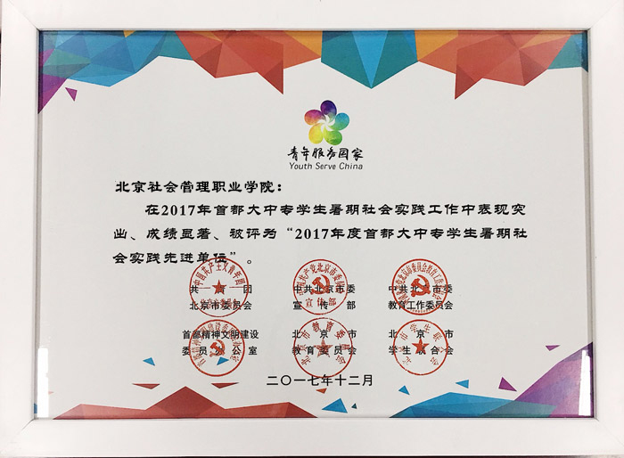 我院荣获“青年服务国家”2017年度首都大中专学生暑期社会实践先进单位