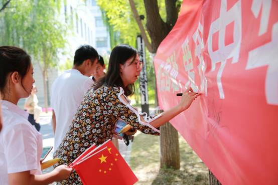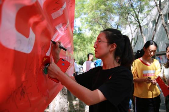中午,我院国旗护卫队在二号学生公寓门口前开展了以“勿忘国耻,爱我中华;铭记‘九一八’,共筑强国梦”为主题的“社管各族青年爱国签名”活动,得到了全院师生的广泛支持和踊跃参与。
