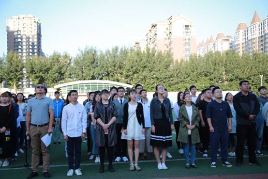 团委王丹书记在国旗下发表讲话,强调青年人要时刻铭记国耻,发奋图强。不忘落后就要挨打的经验教训,坚定中华民族伟大复兴的信念,珍惜来之不易的幸福生活,努力学习,立志成才,为实现中国梦而努力奋斗。