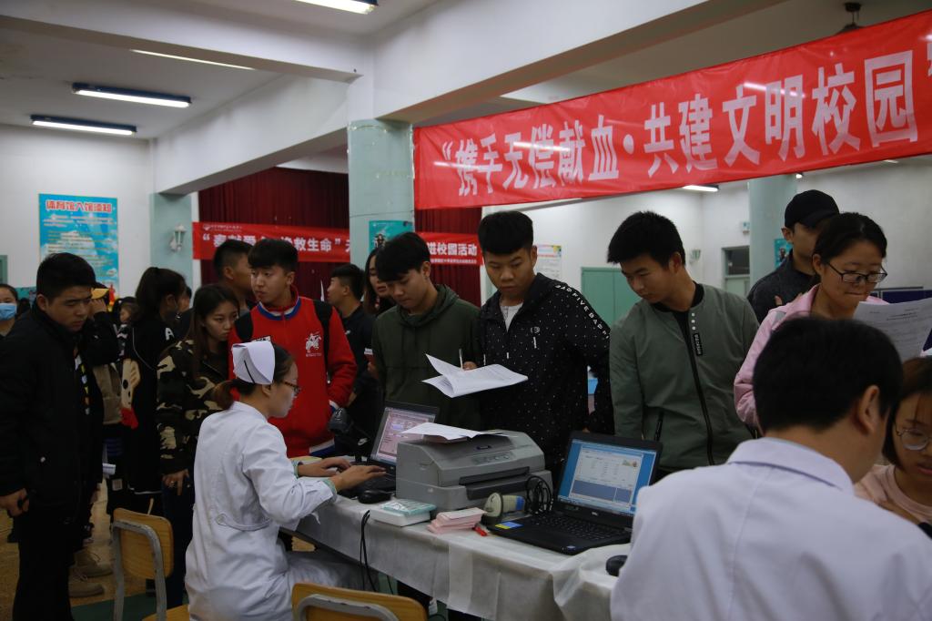 10月24日为前期宣传时间,校红十字会学生分会在学生餐厅门口和教学楼门口设立无偿献血报名点,工作人员负责向有意愿献血的同学介绍献血须知、注意事项及协助同学们规范填写献血信息表格并进行汇总。25日,现场献血当天中午12:00在学术报告厅来自于北京红十字血液中心的医生给同学们做了题为“奉献爱心,挽救生命”的专题讲座,宣传国家有关无偿献血方面的法律法规,普及有关无偿献血的知识,弘扬发生在身边的献血明星的优秀事迹和无偿献血志愿者的高尚品质,营造献血光荣的大爱氛围,使同学们了解无偿献血的意义,了解献血不仅对健康无害,还能提高人体免疫力的本质,让同学们在潜移默化中加深对无偿献血的认知。下午1:00,在体育馆一楼献血活动正式开始,校红十字会学生分会的志愿者在现场设立咨询点、登记点、休息点三个工作点,并配合市红十字血液中心的医护人员做好相关工作。汗水湿透了工作人员的红马甲,却没人停下脚步休息,他们都一丝不苟地坚守在自己的岗位,保证了活动井然有序地进行。活动期间,院党委委员方新也来到献血现场看望并慰问献血的同学们和志愿者,了解献血的同学的身体状况,对同学们积极参与公益活动给予了充分肯定。