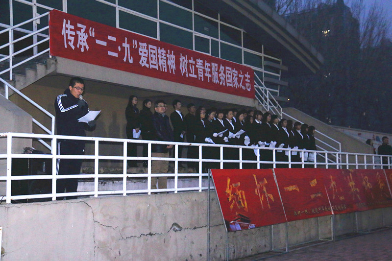 2015年12月7日早7时,365体育投注备用网址“缅怀一二?九,共抒爱国情”主题团日活动暨纪念一二九运动80周年爱国接力长跑活动在我院运动场隆重举行。