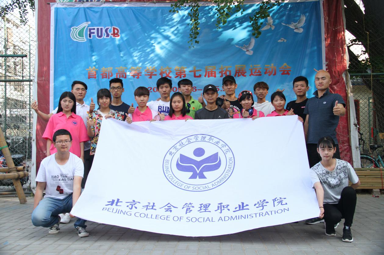 -27日,由我院团委指导的大学生素质拓展协会参加了首都高校第七届素质拓展运动会。在拓展协会张洪来老师和许春明老师的指导下,组建了由社团骨干宋文昊、张文畅等同学带领的“社管青年1队”、“社管青年2队”等16名队员参赛,最终以团队总分30分的好成绩荣获本次比赛团体第九名,荣获团队优胜奖,创造有史以来最好成绩,为学校争得荣誉。
