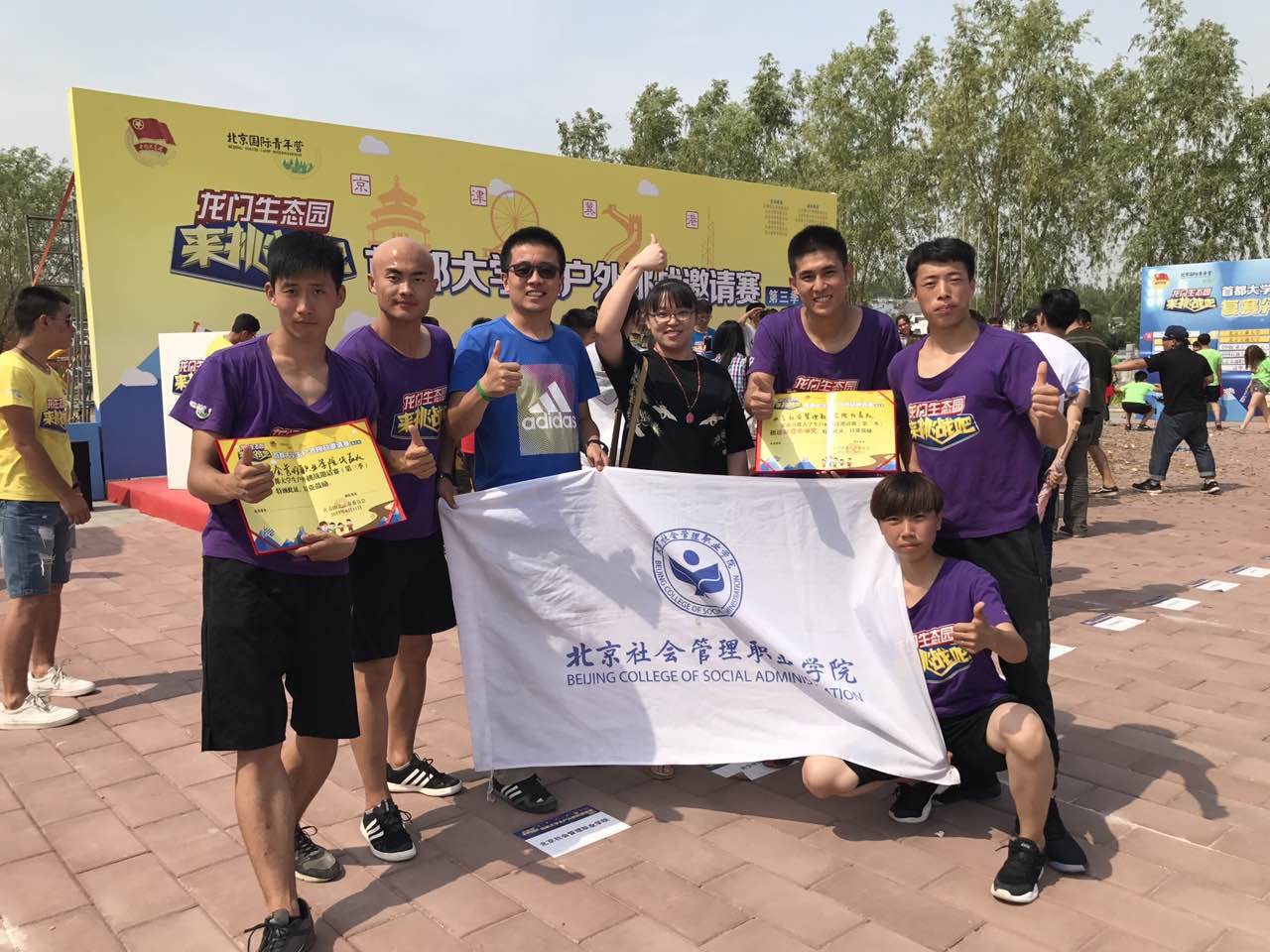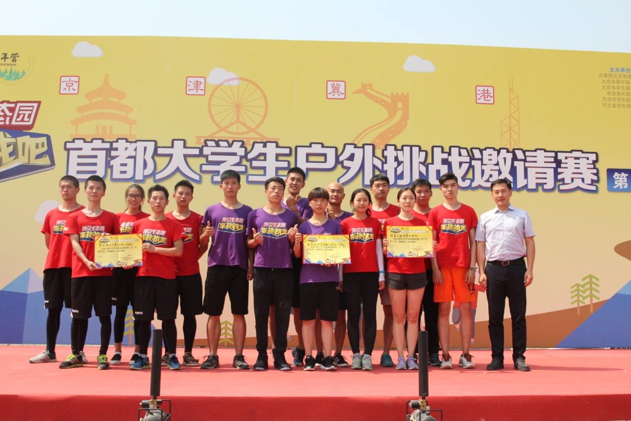 经过近三天的激烈角逐,由共青团北京市委员会、北京市青年联合会、北京市学生联合会、香港青年联会、天津市学生联合会、河北省学生联合会主办,北京体育大学协办,北京青少年营地教育协会、北京体育大学社会体育系、北京青少年网络文化发展中心、北京国际青年营、北京房山龙门生态园承办的“来挑战吧”首都大学生户外挑战邀请赛(第三季)于2017年6月11日在北京国际青年营房山营地圆满闭幕。我院“社管青年”代表队今年首次参加该项赛事,经过激烈比拼,最终荣获团队第五名、极速前进竞赛场单项奖第一名的好成绩。